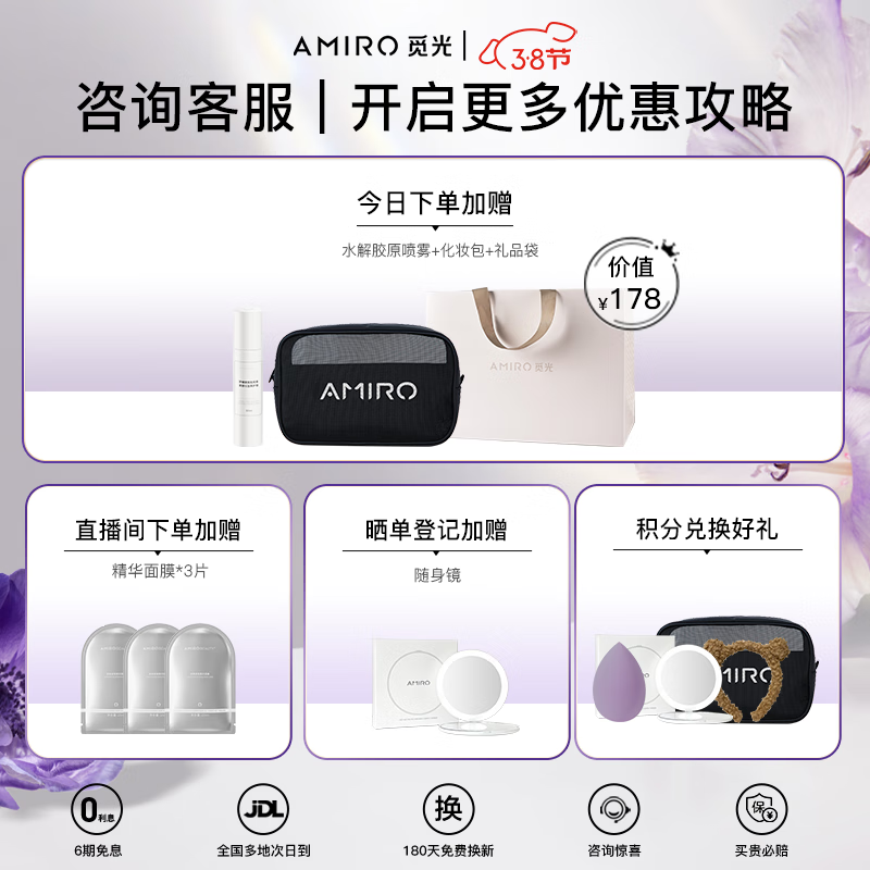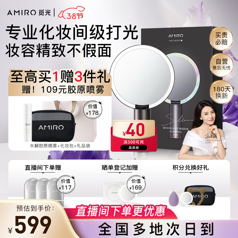 AMIRO觅光化妆镜带灯led日光梳妆美妆镜子补光智能高清台式便捷女神节生日新年礼物送女生送老婆小黑镜价格:649.00元!