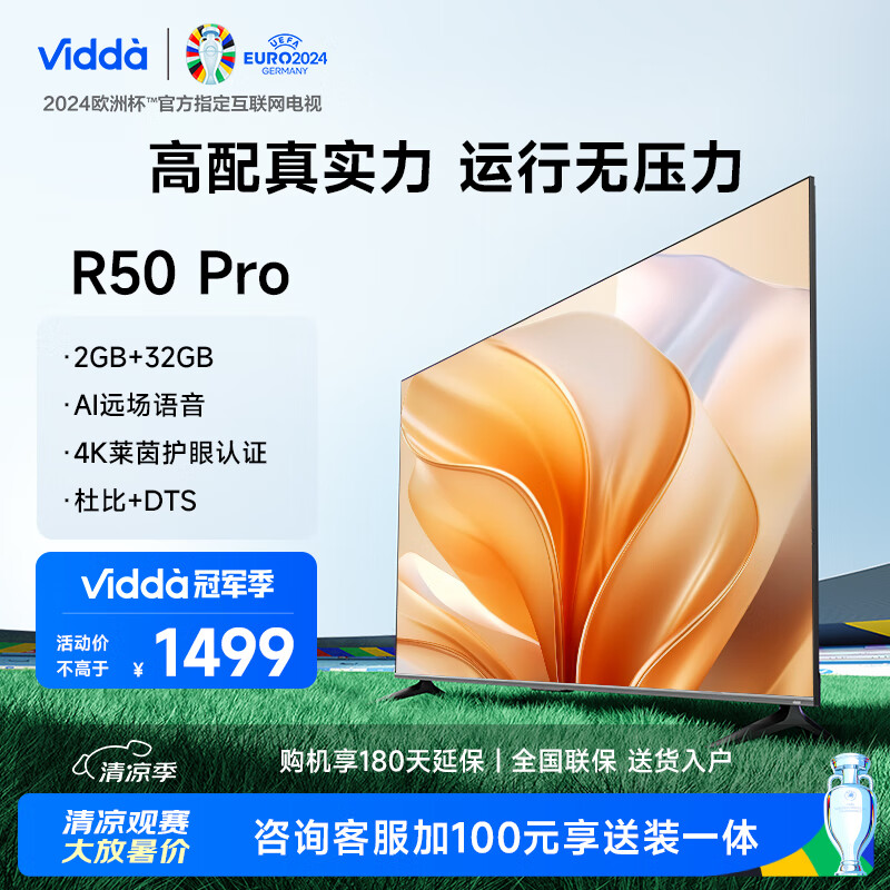 Vidda R50 Pro 海信电视 50英寸 2+32G 远场语音 4K超薄智能游戏液晶欧洲杯大屏电视以旧换新50V1K-R价格:1699.00元!