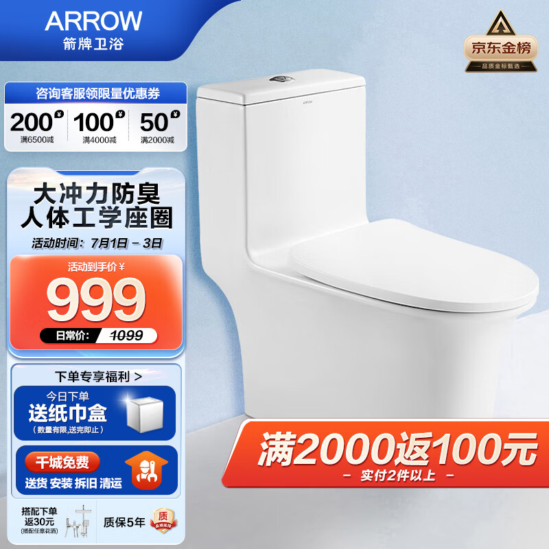 箭牌(ARROW)抽水马桶家用卫浴虹吸坐便器普通座便节水坐厕 1级水效AEB12617L价格:1129.00元!