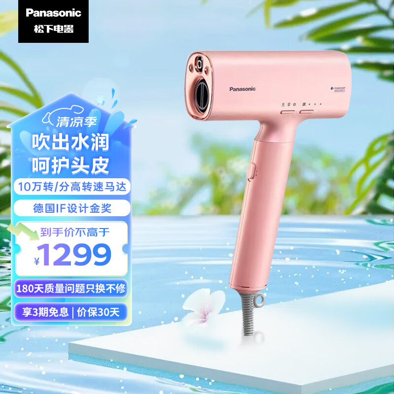 松下(Panasonic)电吹风机大功率高速大风力速干送老婆女友便携纳诺怡吹发护发家用电吹风筒NX70锦鲤色礼盒款价格:1299.00元!