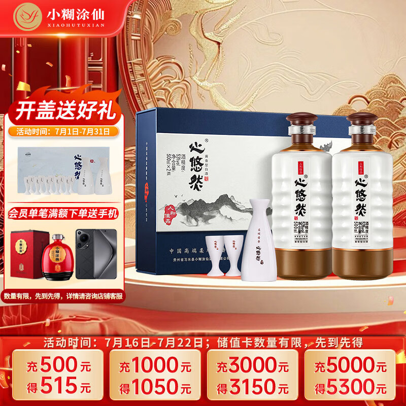 小糊涂仙 心悠然 人和礼盒 酱香型白酒 53度 500ml*2瓶 礼盒装 送礼佳品价格:899.00元!