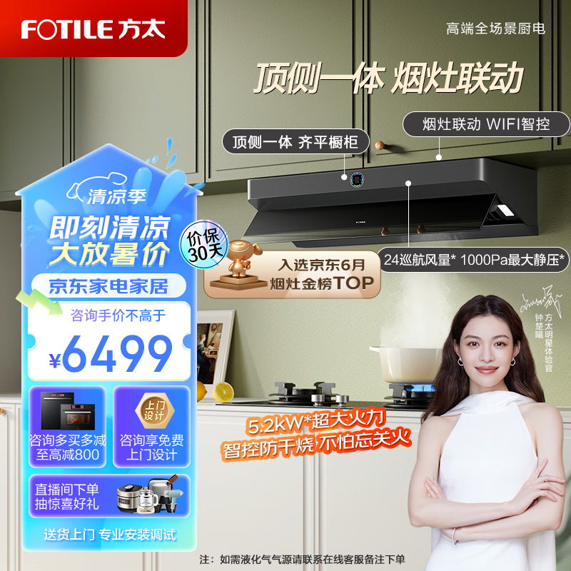 方太(FOTILE)F2抽吸油烟机灶具套装 顶侧一体欧式侧吸 联动24巡航风量防干烧烟灶套餐01-F2.i+01-THK21B天然气价格:6499.00元!