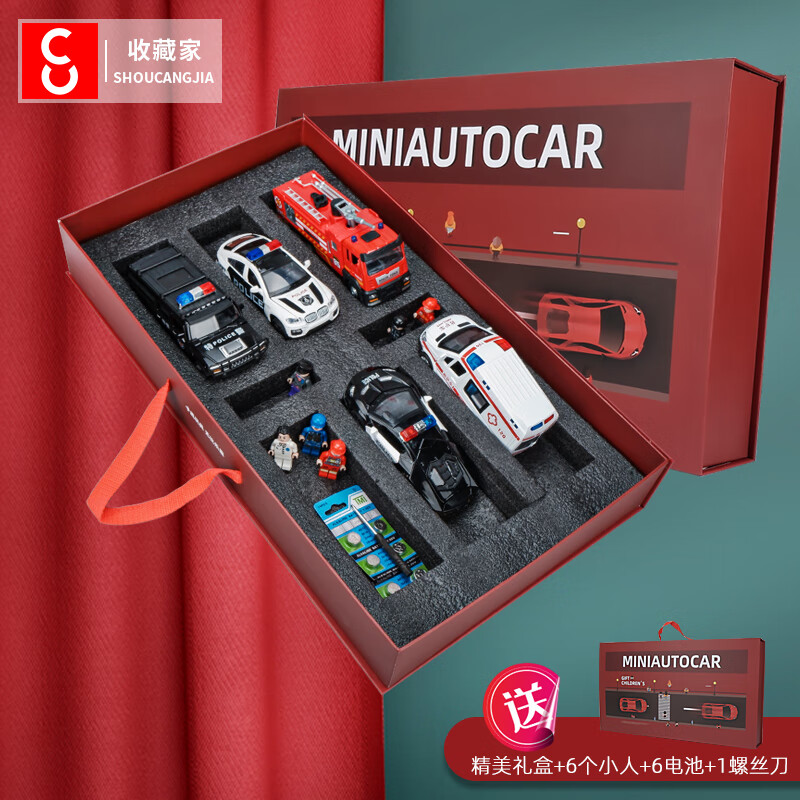 收藏家1/32合金玩具车消防车警车救护车5辆儿童车模跑车汽车模型礼盒价格:268.00元!