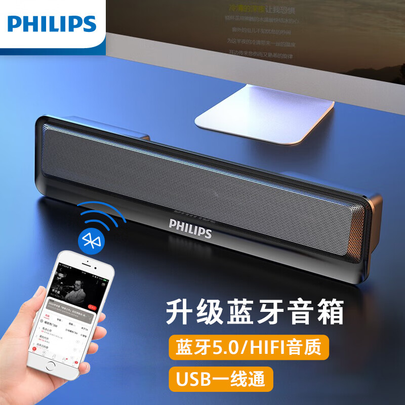 飞利浦 PHILIPS SPA2100蓝牙音箱音响家用台式电脑桌面多媒体USB便携式小音箱价格:129.00元!
