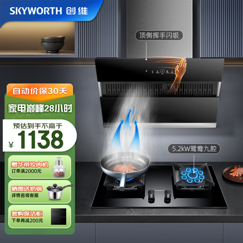 创维(Skyworth)油烟机燃气灶套装 家用大吸力小尺寸抽油烟机灶具套餐烟灶套装Y101+Z61BS天然气价格:1138.00元!