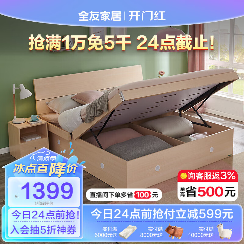 全友家居 双人床高箱储物床板式床现代简约主卧室床1.8x2米家具106302价格:1998.57元!