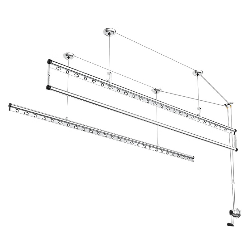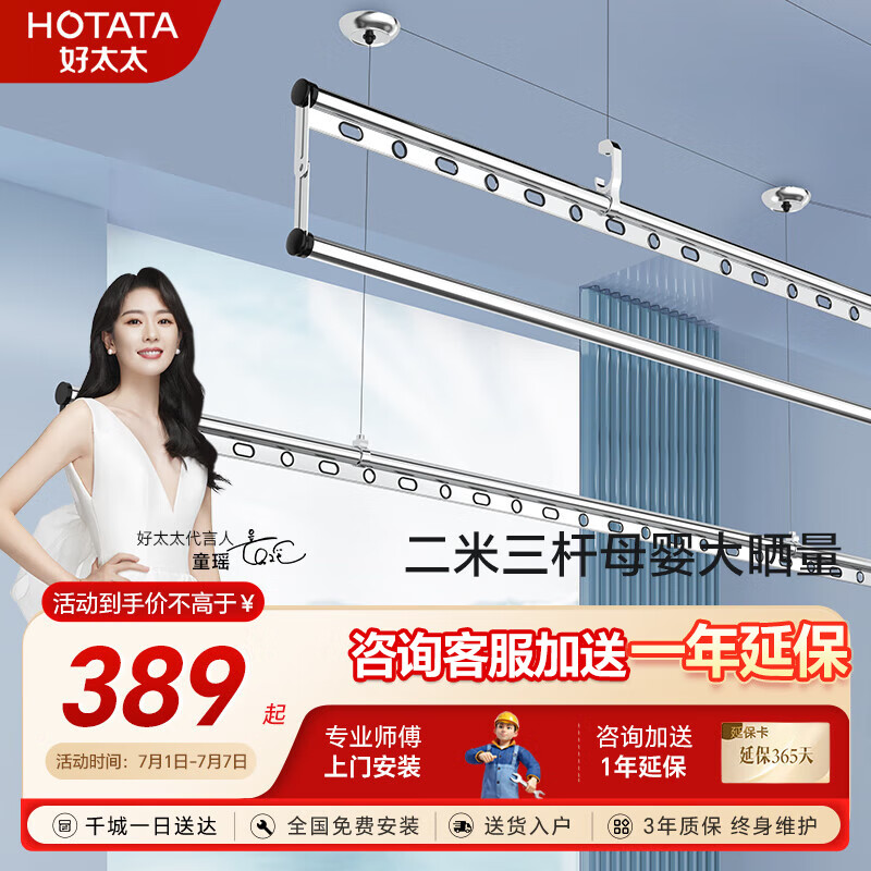 好太太(Hotata)晾衣架阳台三杆手摇晾衣杆升降手动室内室外 晒衣架家用晒衣架 D-1117 2.0米银色三杆+免费安装价格:489.00元!