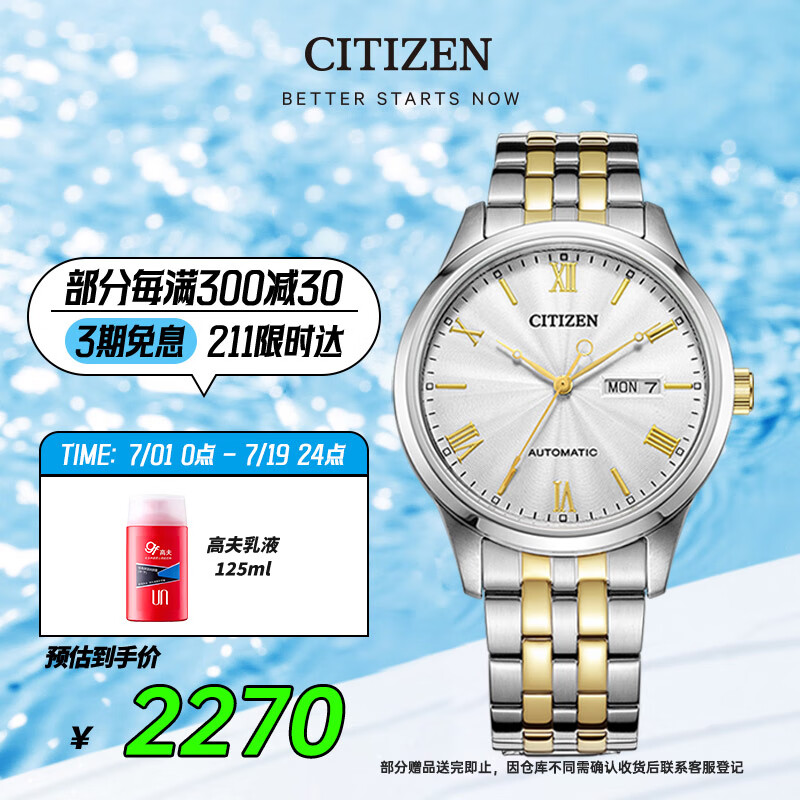 西铁城(CITIZEN)手表男日韩表自动机械双显镶水晶钢带学生父亲节礼物NH7506-81A价格:2520.00元!