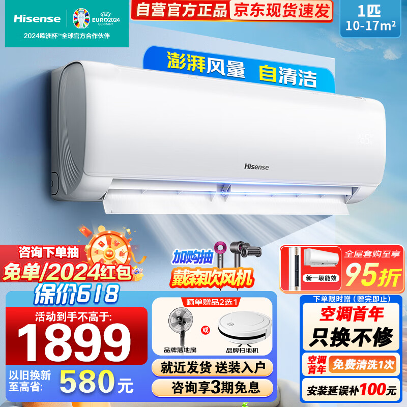 海信1匹空调挂机新一级能效家用卧室大风量变频冷暖节能省电静音高温清洁防直吹KFR-26GW/E290-X1价格:1899.00元!