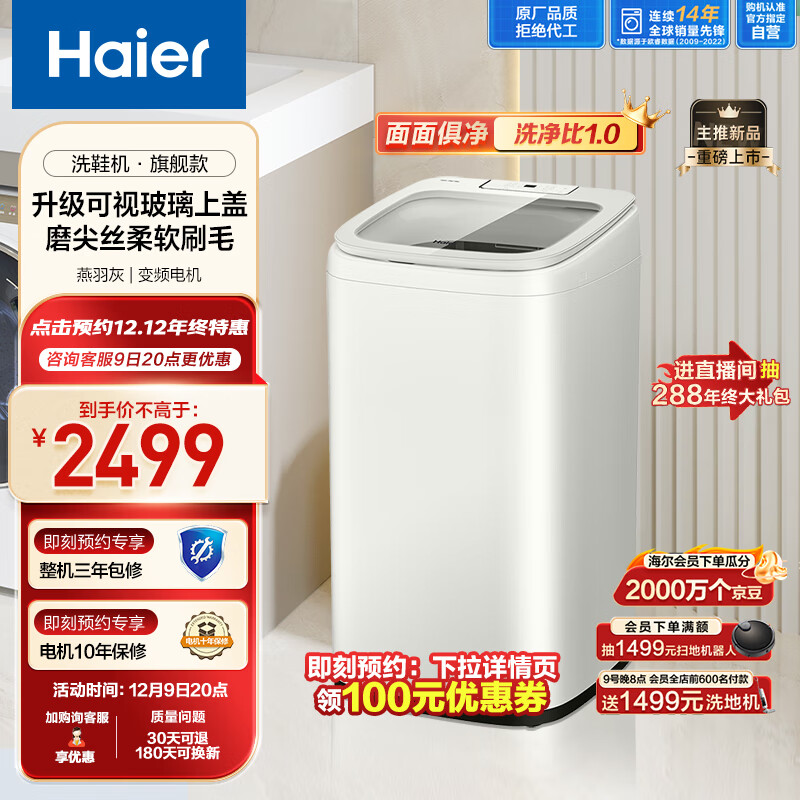 海尔(Haier)洗鞋机 刷鞋机 洗衣机小型 全自动5KG洗鞋神器洗脱一体电离除菌BB洗鞋机母婴呵护HQ1-TB278G燕羽灰价格:2599.00元!
