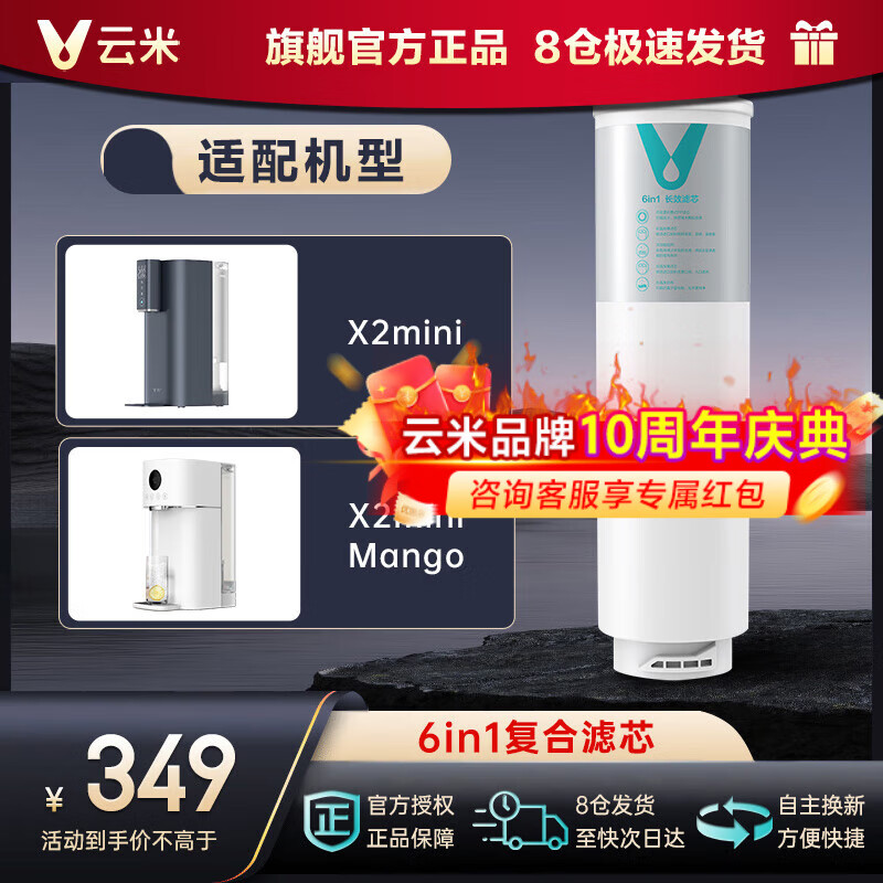云米(VIOMI) 升级款云米净水器滤芯适配机型S2、Fast3、X2、Quick5、MeePlus、澎湃/Fast 1000G 6in1滤芯(X2 mini)价格:335.18元!