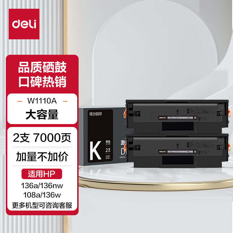 得力(deli)136w硒鼓 110a硒鼓适用惠普136a mfp136w墨盒 136nw 108w粉盒 hp W1110a硒鼓138pn打印机大容量2支价格:149.00元!