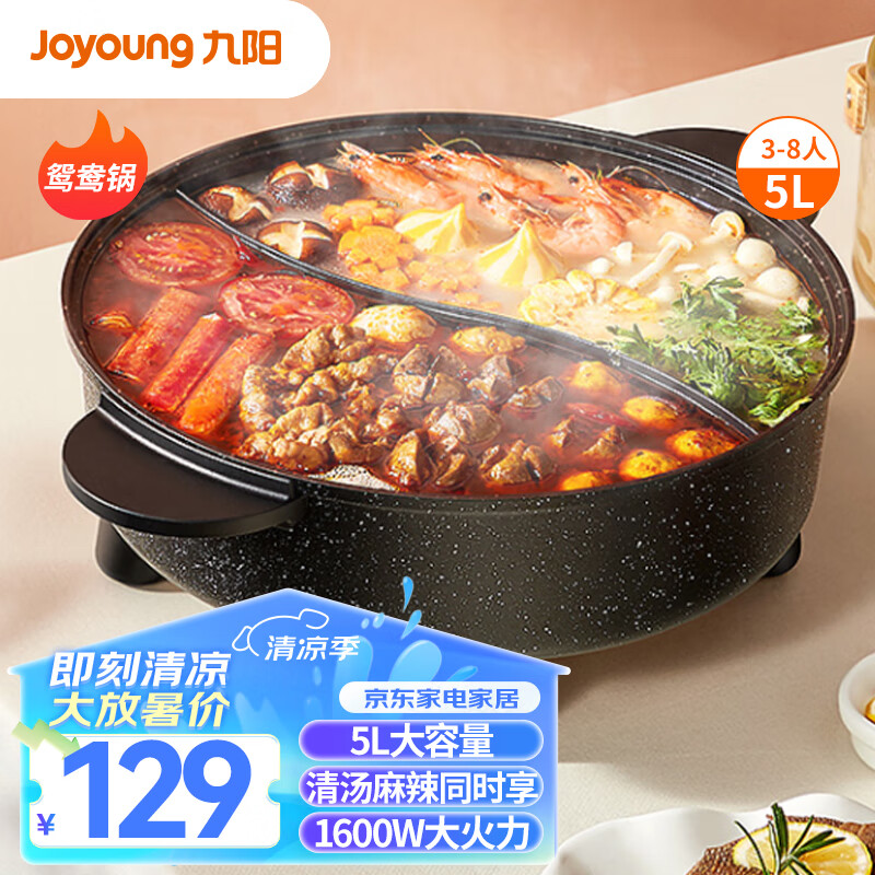 九阳(Joyoung)5L容量 1600W大火力火锅专用锅电火锅电炒锅麦饭石色涂层不粘电煮锅 HG50-G512价格:129.00元!