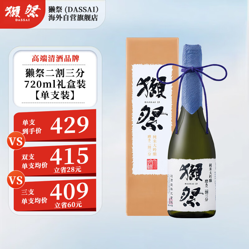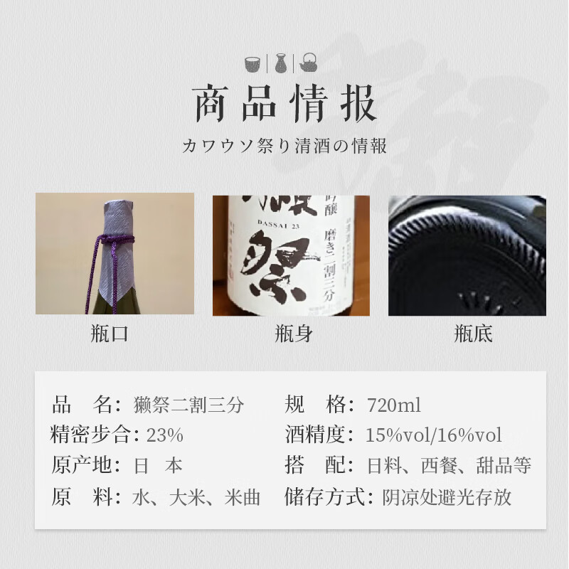 獭祭(Dassai)23二割三分 日本清酒 720ml 礼盒装 纯米大吟酿价格:429.00元!