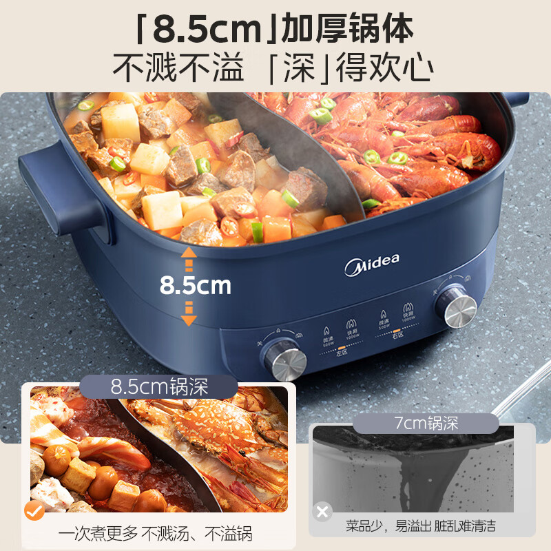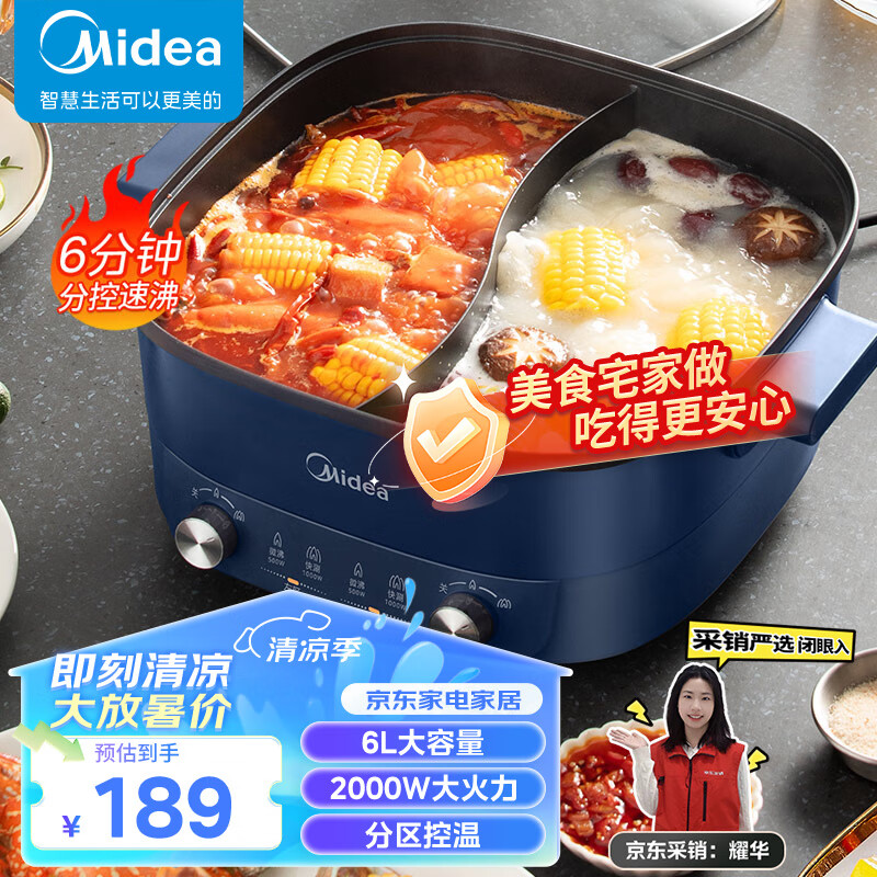 美的(Midea)电火锅 鸳鸯锅 火锅专用锅 电煮锅多功能锅6分钟双控速沸家用一体式电热锅6L多用途锅MC-HGC303012价格:189.00元!