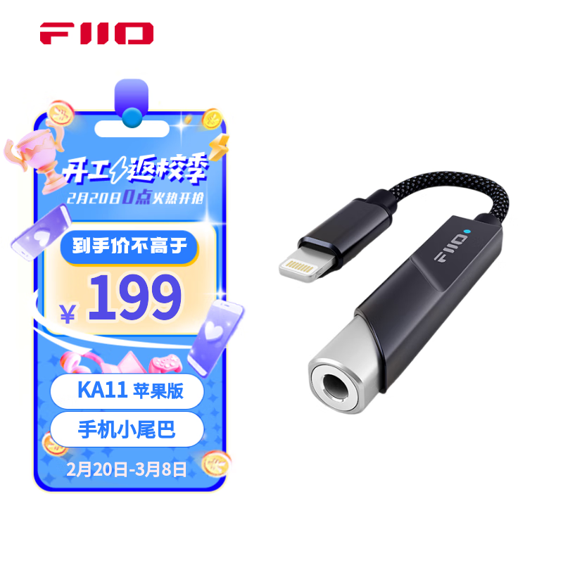 飞傲 &翡声 KA11解码耳放HiFi电脑声卡安卓手机功率放大器便携小尾巴转接线 黑色 Type-C版价格:199.00元!