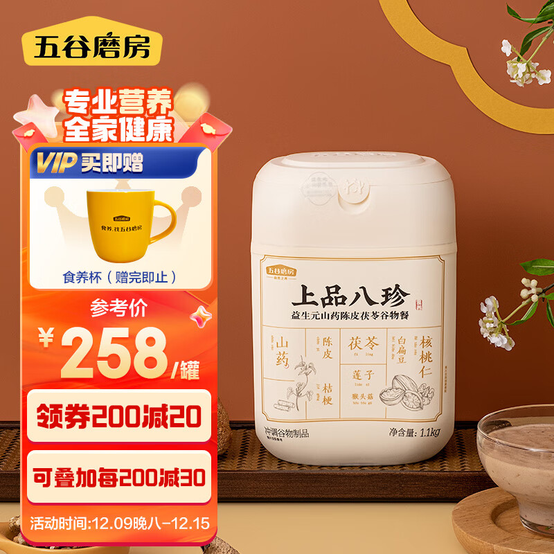 五谷磨房 上品八珍益元芡实莲子茯苓陈皮猴头菇山药即食米糊脾胃送长辈早餐代餐粉1100g价格:288.00元!