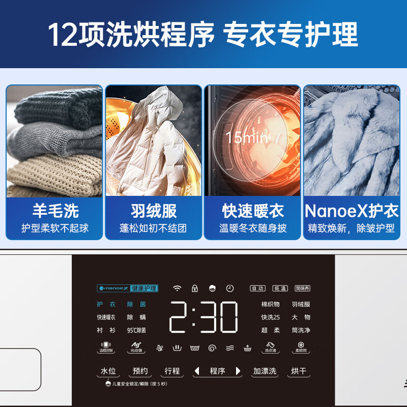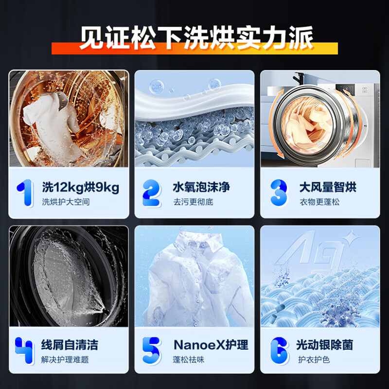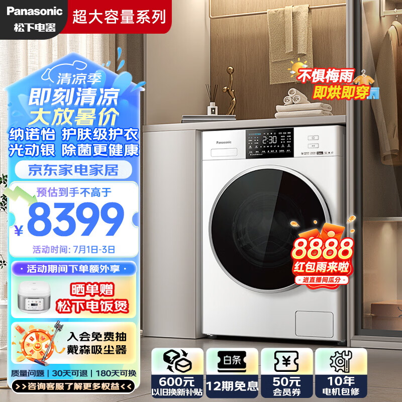 松下(Panasonic)滚筒洗衣机全自动洗烘一体12公斤大容量 纳诺怡护理 光动银除菌 水氧泡沫净 智能投放XQG120-ND2Z5价格:9329.00元!