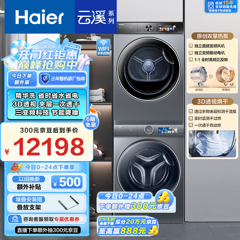 海尔(Haier)云溪386洗烘套装 10KG精华洗滚筒洗衣机全自动+双擎热泵烘干机家用 超薄全嵌 386+26PLUS 以旧换新价格:12498.00元!