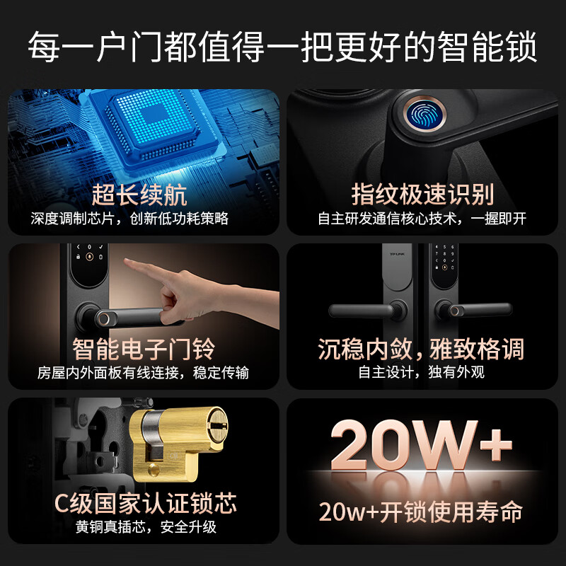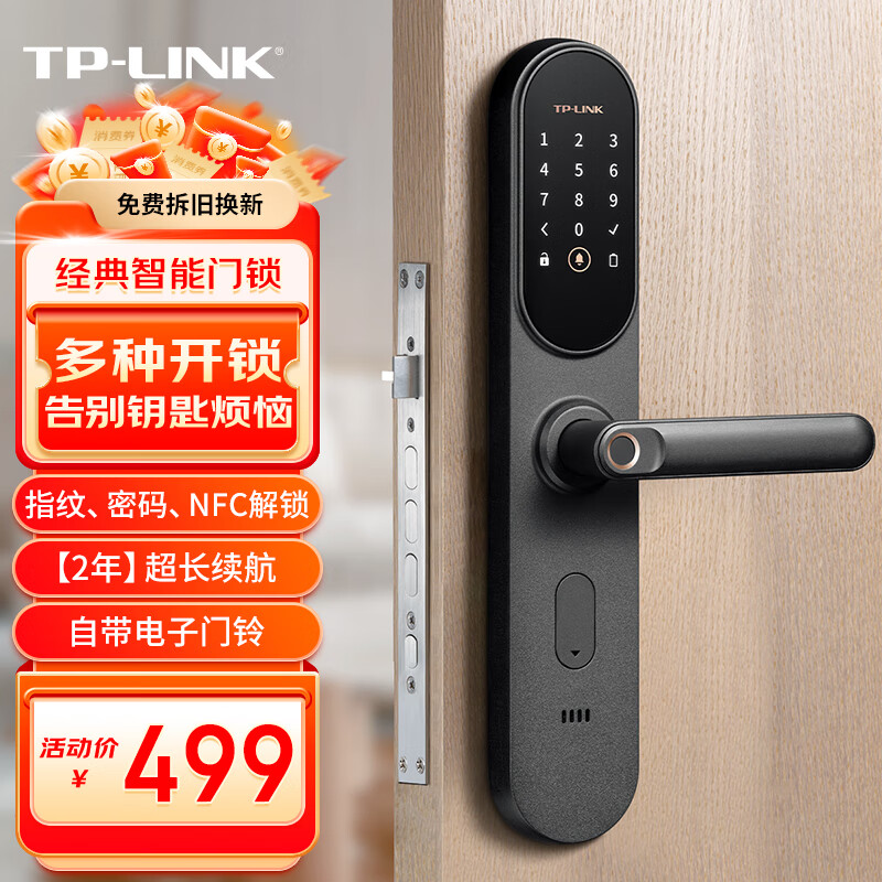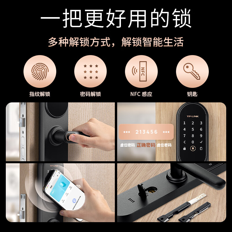 TP-link 智能门锁 指纹锁密码锁 C级锁芯 家用电子锁防盗门锁NFC解锁入户门 SL21 免费上门安装价格:499.00元!