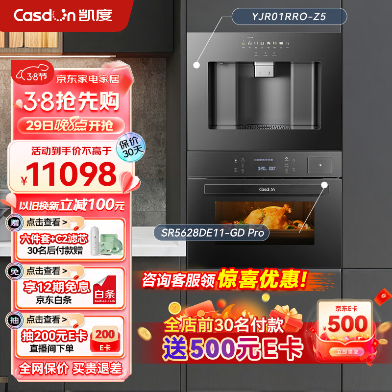 凯度(CASDON)嵌入式双热风蒸烤炸炖一体蒸烤箱SR5628DE11-GD Pro+Z5嵌入式直饮机一体净饮机价格:11098.00元!