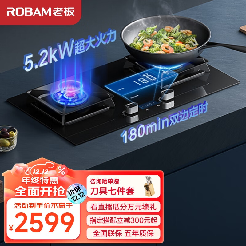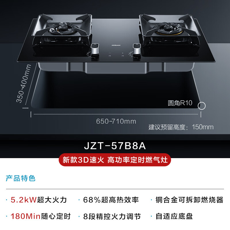 老板(Robam)JZT-57B8A家用燃气灶定时天然气灶双灶嵌入式 5.2kW大火力猛火灶易打理可调节底盘灶具灶台价格:2599.00元!