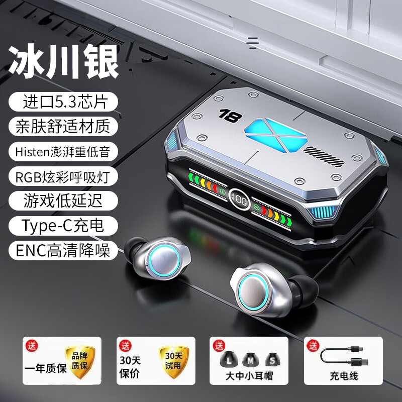 XAXR M43适用华为真无线蓝牙耳机入耳式迷你隐形苹果小米通用 智能触控 LED特效 [蓝牙5.3芯片]银色价格:69.90元!