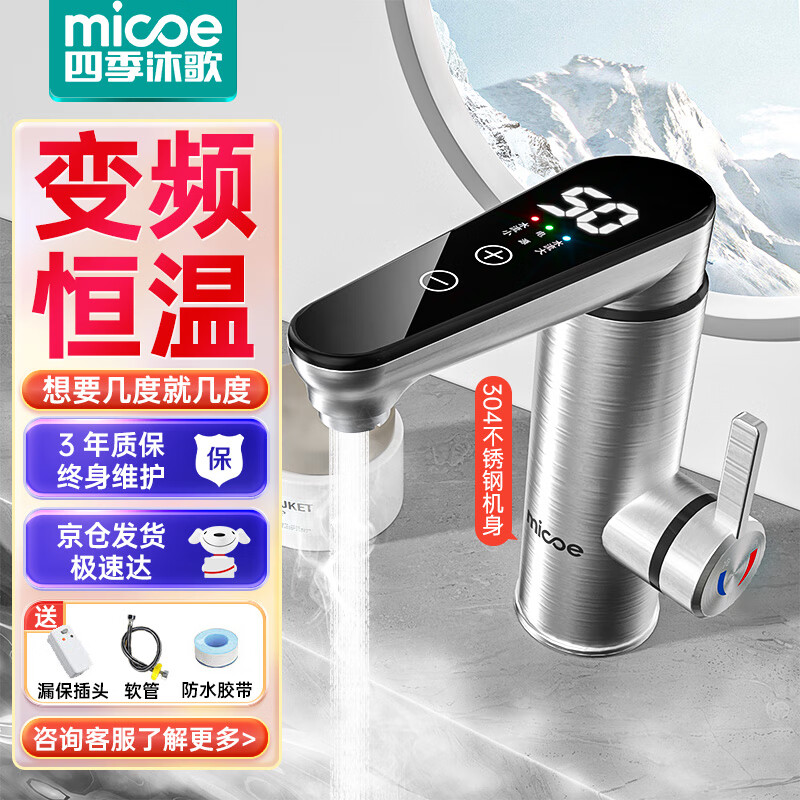 四季沐歌(MICOE)电热水龙头变频恒温卫浴面盆冷热两用速热电加热厨房宝下进水不锈钢机身价格:249.00元!