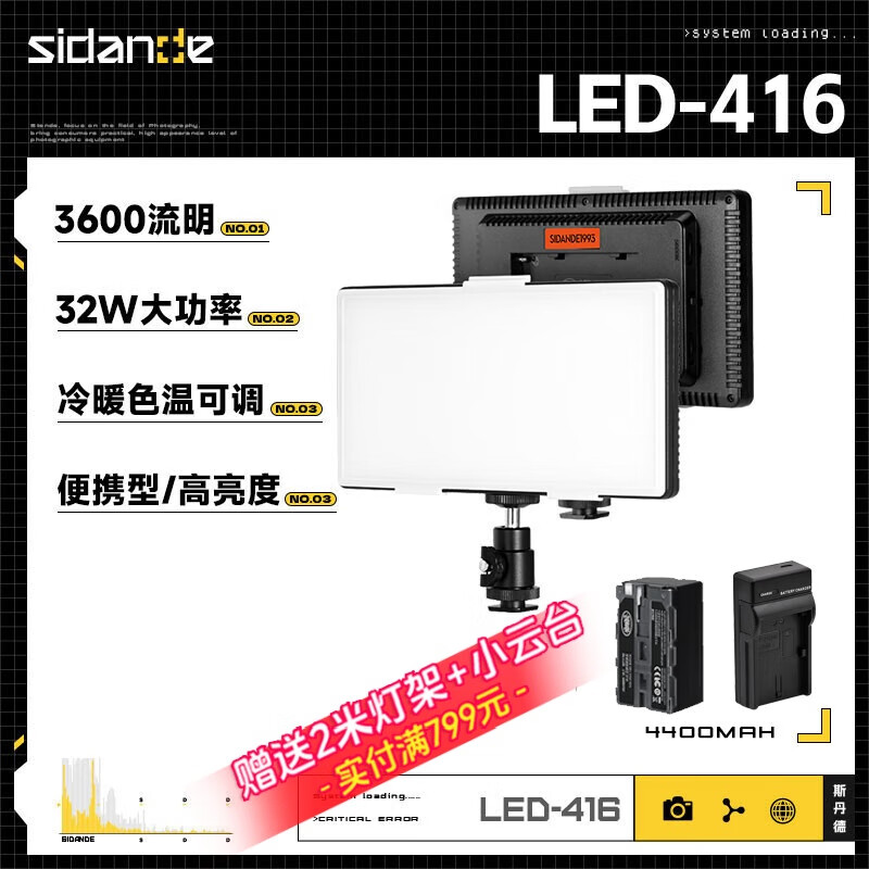 斯丹德 摄影LED补光灯32W大功率色温可调人像直播灯光常亮灯柔光灯照相小型婚庆便携手持拍照灯价格:199.00元!