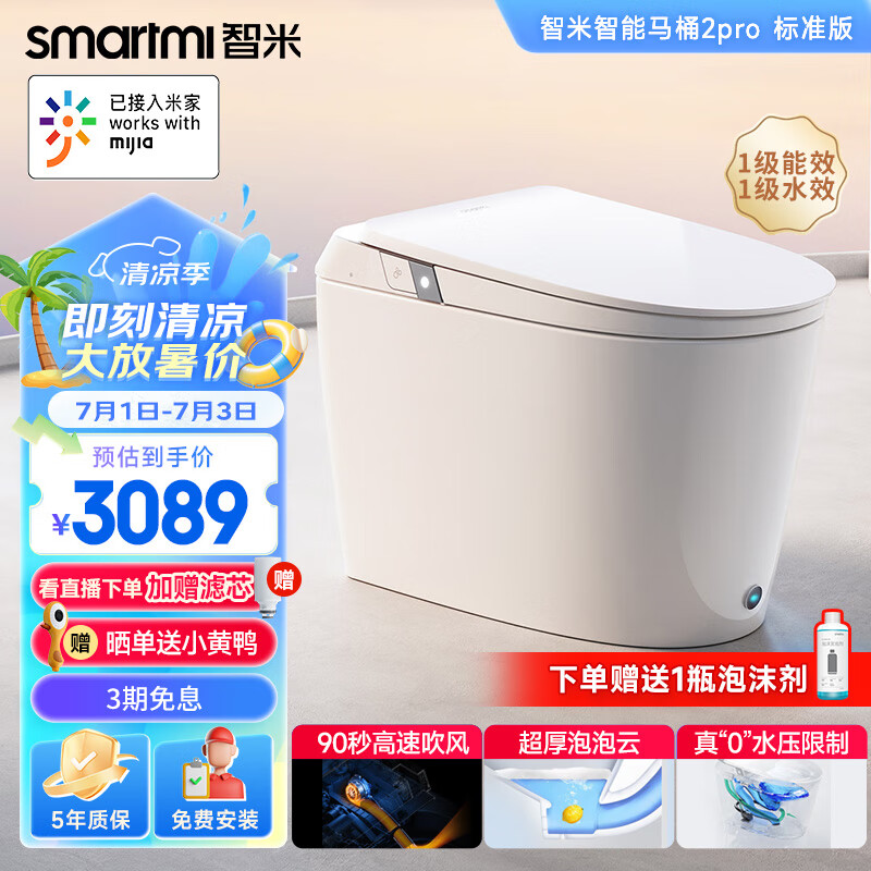 智米智能马桶泡沫盾无水压自动冲水智能坐便器2PRO ZNMTY08ZM-300坑距价格:3689.00元!