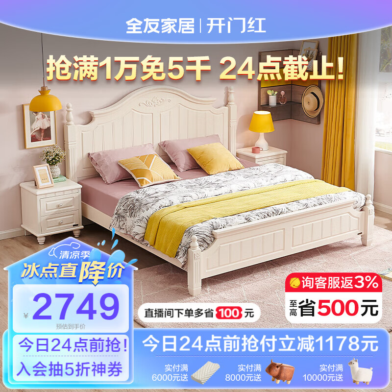 全友家居 简约家用双人床美式公主床主卧室高脚板式床120618价格:3927.14元!
