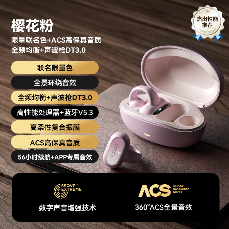 SANAG塞那 蓝牙耳机开放式骨传导概念无线不入耳运动耳机音乐降噪长续航高端耳夹适用苹果通用礼物男女 樱花粉|全频重低音|平台版价格:399.00元!