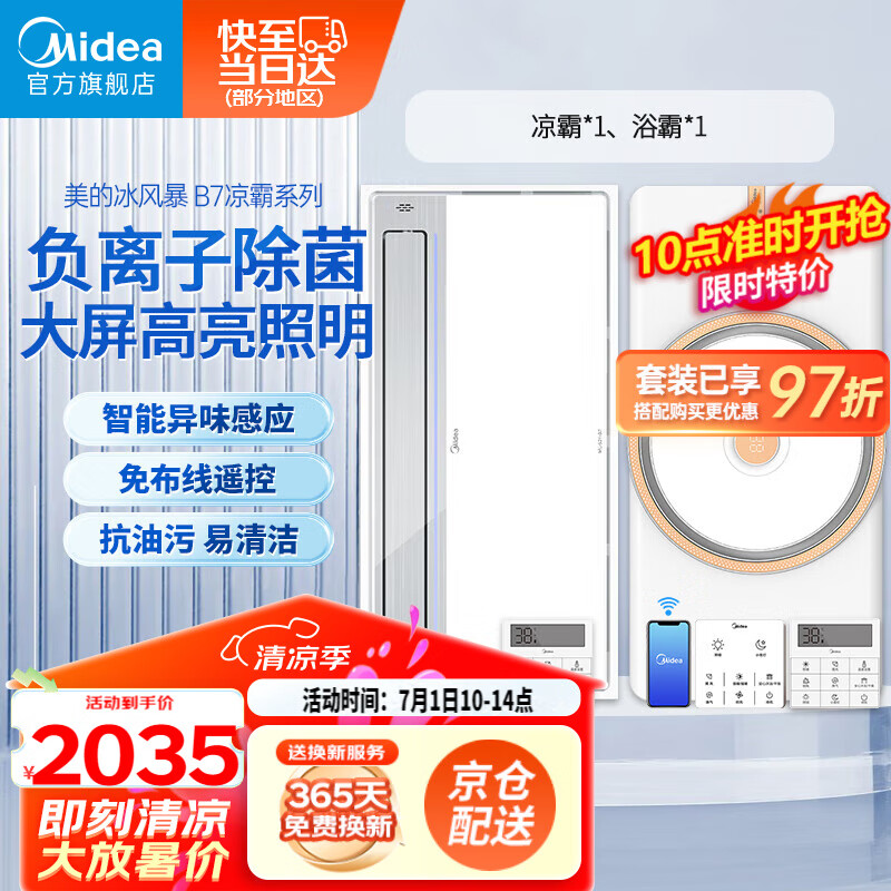 美的(Midea)凉霸厨房卫生间集成吊顶照明一体负离子除味异味感应排气换气吹风价格:2180.00元!