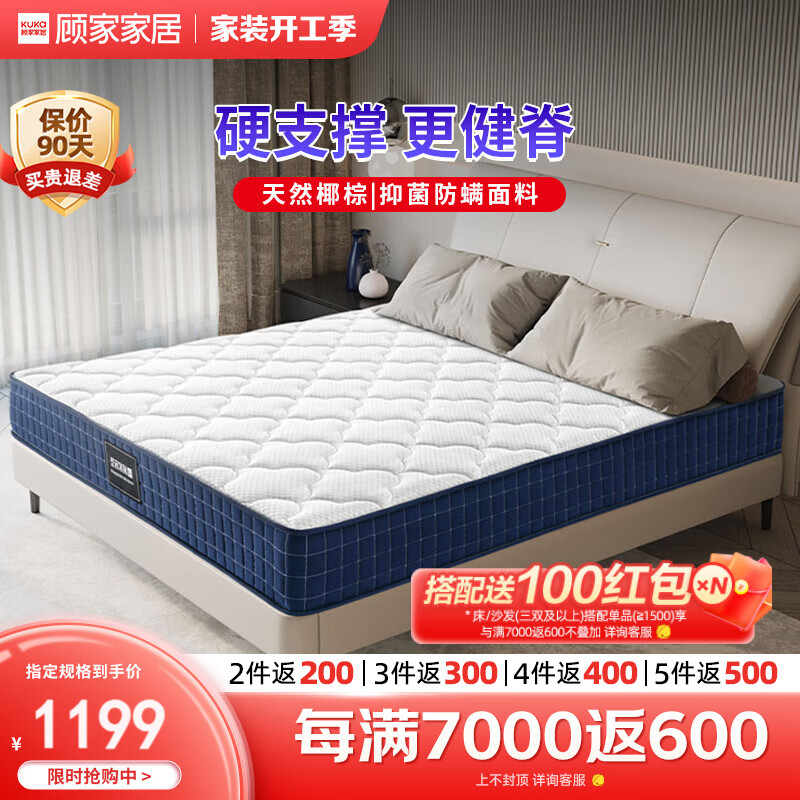 顾家家居无胶椰棕抑菌防螨整网弹簧床垫床垫 宝石蓝 1.5*2米价格:1199.00元!