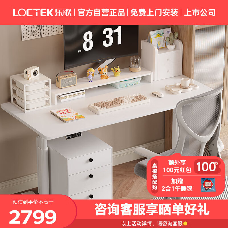 乐歌电动升降桌站立式电脑桌台式书桌办公学习桌子E6/1.6m白色套装价格:3099.00元!