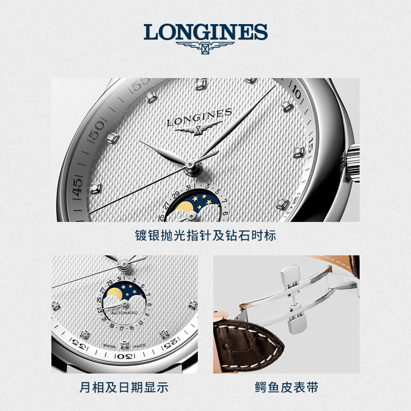 浪琴(LONGINES)瑞士手表 名匠系列 月相机械皮带男表 L29194773价格:25300.00元!