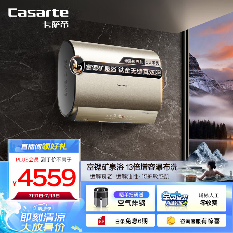 卡萨帝(Casarte)60升速热储水式电热水器家用超薄双胆扁桶型13倍增容富锶泉一级能效CEC6005-CJ7U1【以旧换新】价格:4799.00元!