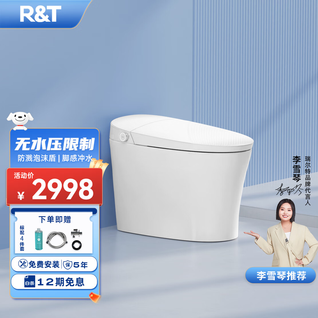 瑞尔特(R&T)智能马桶一体机泡沫盾无水压限制脚感翻盖冲水智能坐便器FD3-305价格:3999.00元!