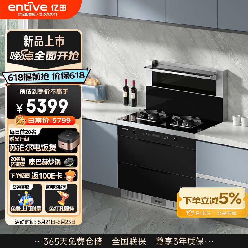 亿田(entive)集成灶消毒柜一体 侧吸式 二消毒柜 JJZY-J01X-C左排液化气价格:5899.00元!