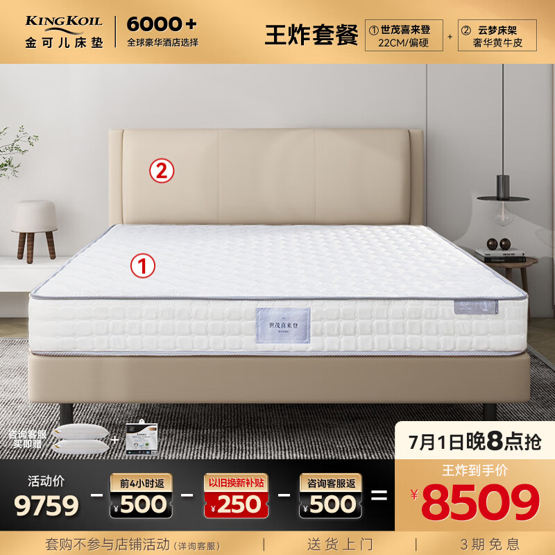 金可儿(Kingkoil)弹簧乳胶床垫皮床双人床云梦之床·山岚+世茂喜来登套床1.8米*2米价格:9759.00元!