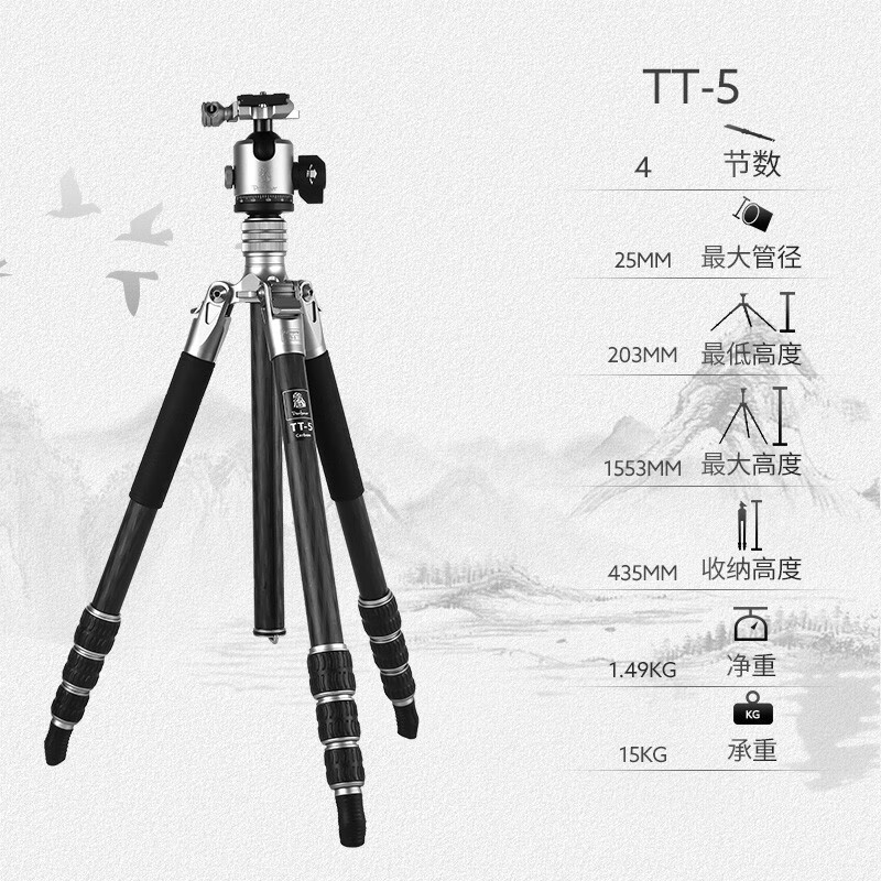 富图宝(Fotopro)TT-5+LG-5 磐图·羽 匠心营造纯碳纤维轻量化摄影云台三脚架 1.49KG价格:2939.00元!