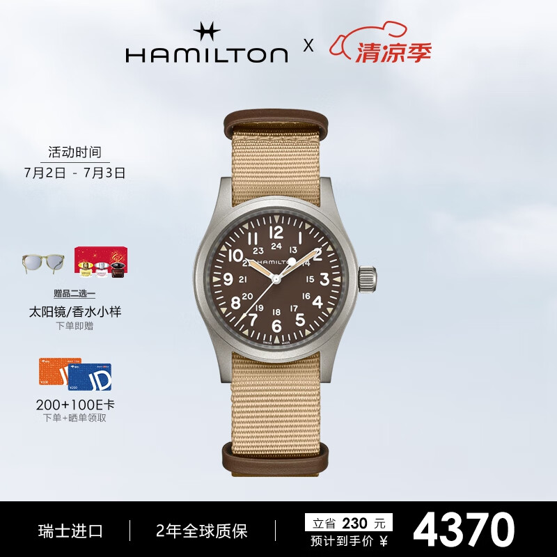 汉米尔顿(Hamilton)汉密尔顿瑞士手表军表男士手动机械表 卡其野战手动上链系列价格:4600.00元!