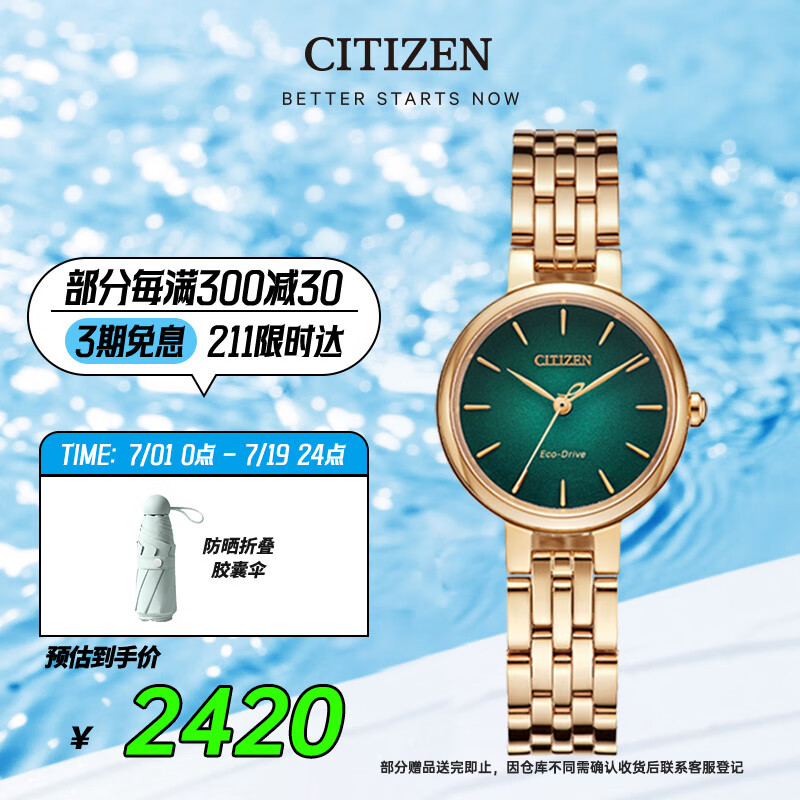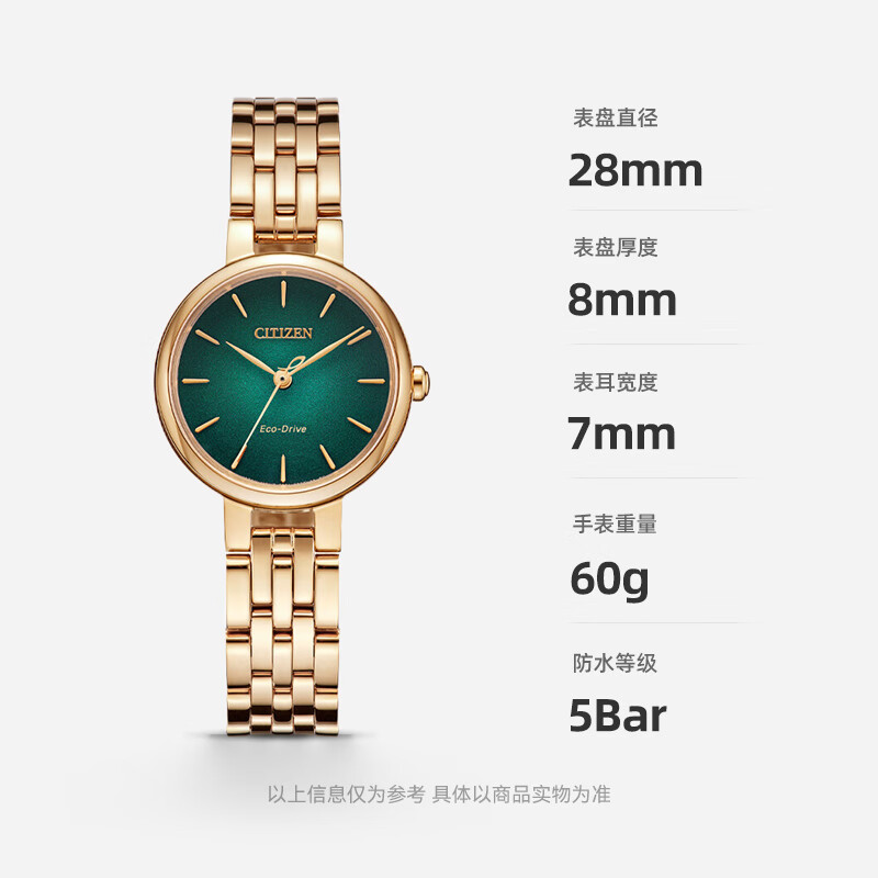 西铁城(CITIZEN)手表女日韩表L系列光动能绿色盘钢带学生送长辈礼物EM0993-82Z价格:2670.00元!