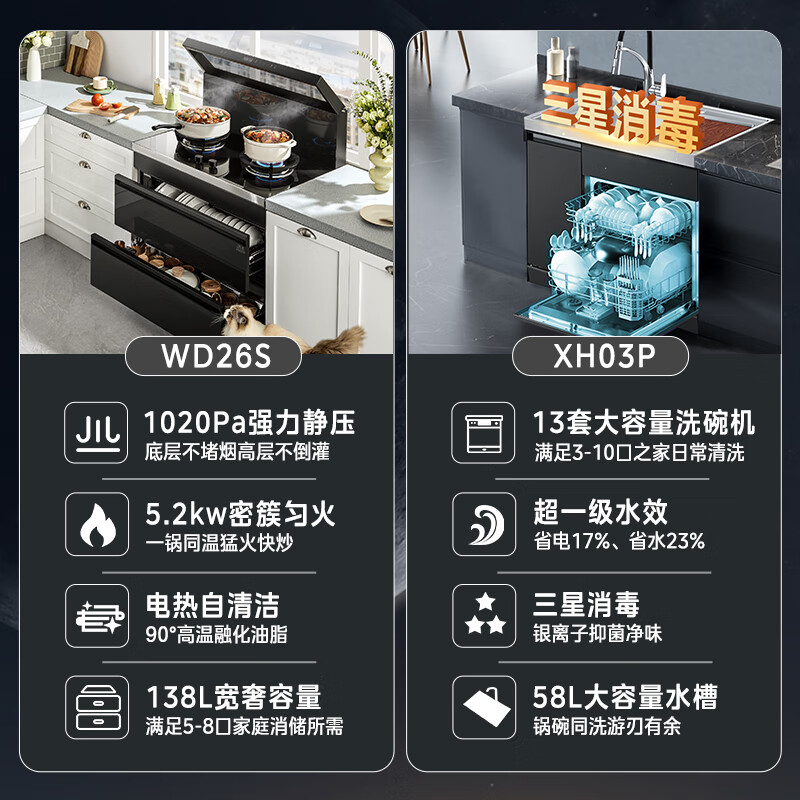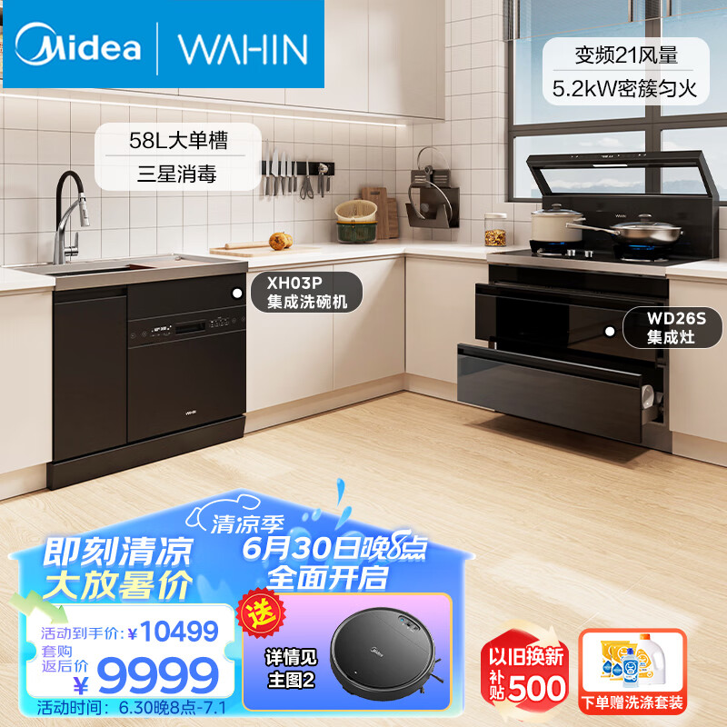 美的(Midea)出品 变频21风量千帕强压 5.2KW火力集成灶 13套一级水效集成洗碗机 WD26S+XH03P套装 天然气价格:10499.00元!