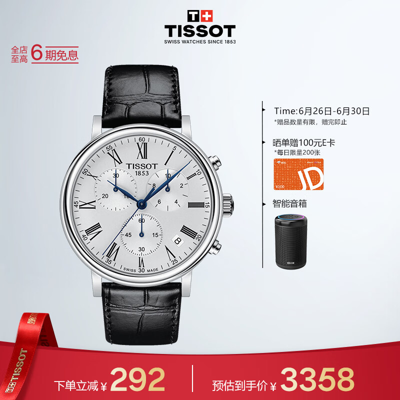 天梭(TISSOT)瑞士手表 卡森臻我系列腕表 皮带石英男表 T122.417.16.033.00价格:3650.00元!