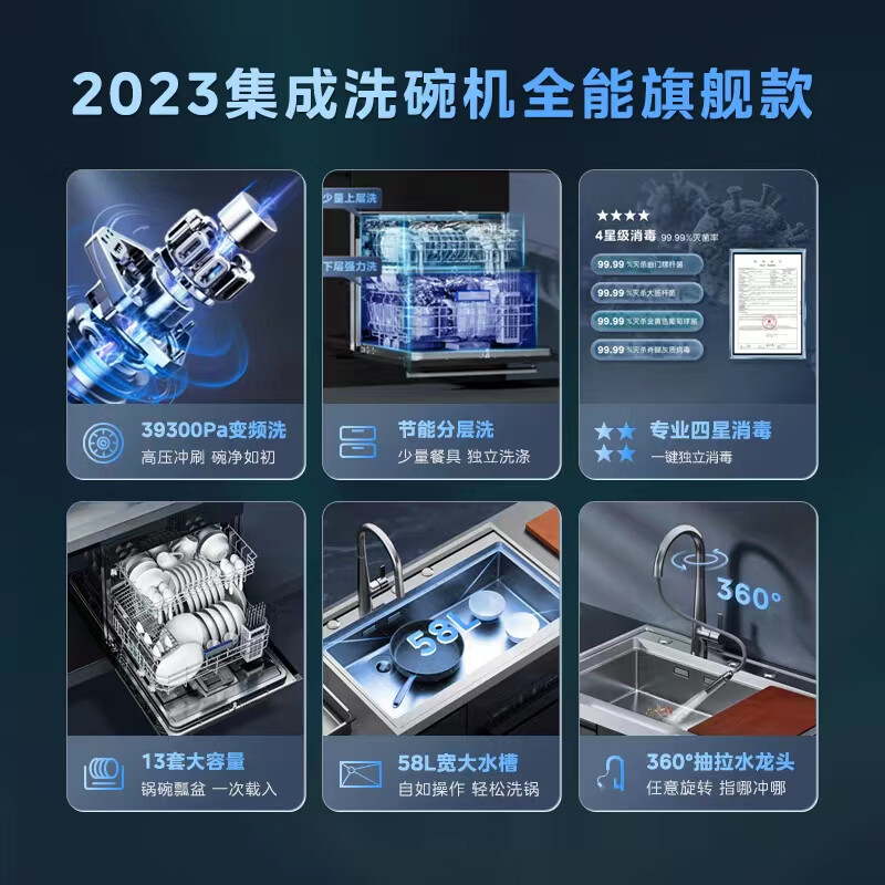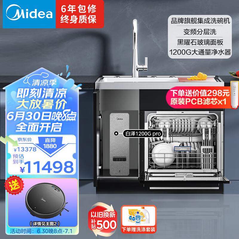 美的集成水槽变频洗碗机集成洗碗机 集成洗碗机XH09搭配净水器白泽1200G Pro家用净水机价格:11498.00元!