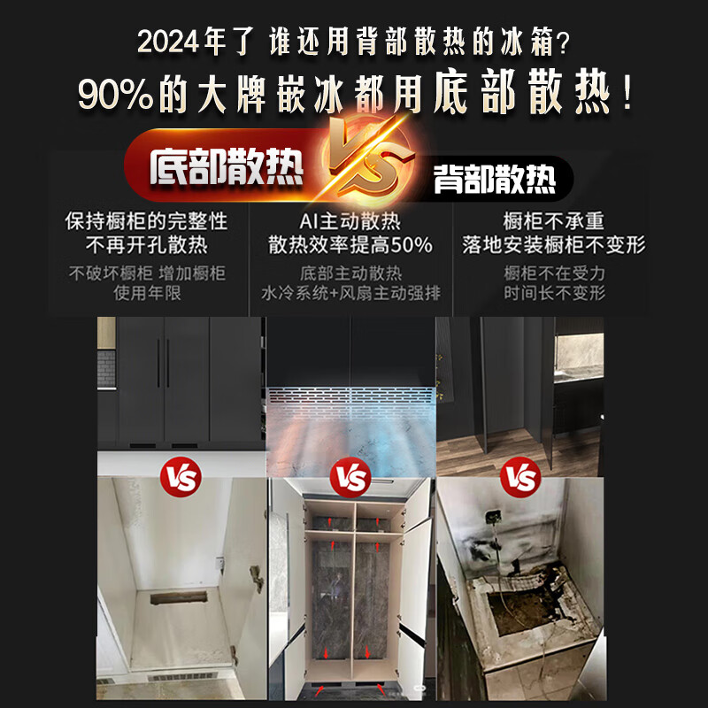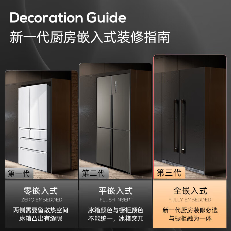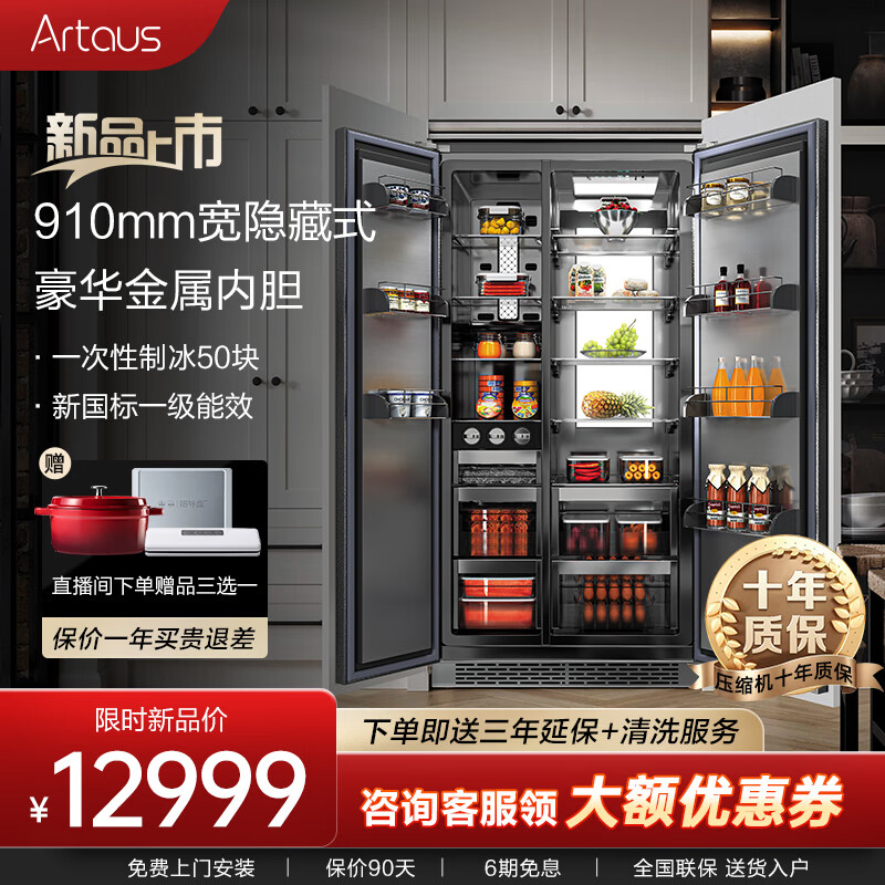 Artaus阿塔斯全嵌入式冰箱一米宽TK455内嵌橱柜底部散热超薄60cm以下对开一体隐藏大容量不锈钢镶入455L价格:12999.00元!