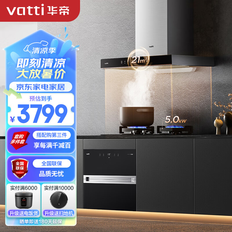 华帝(VATTI)抽油烟机 欧式顶吸燃气灶具消毒柜套装 家用厨房三件套 挥手智控i11176+72B+13025(天然气)价格:3799.00元!