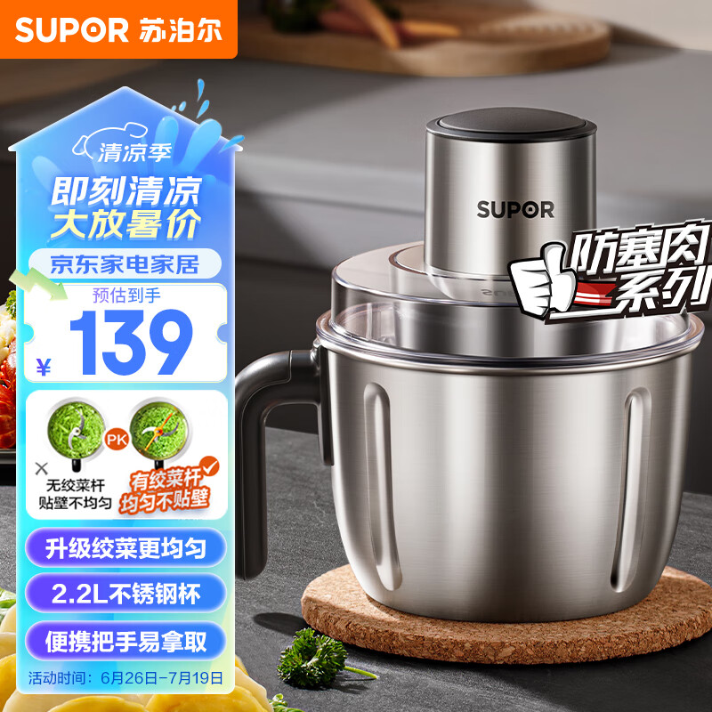 苏泊尔(SUPOR)绞肉机绞馅机不锈钢家用多功能搅肉机2.2L电动切菜打肉碎肉机搅拌机JR56-U价格:139.00元!