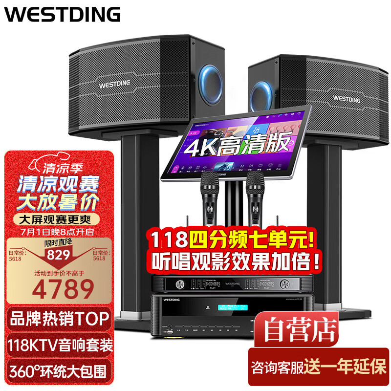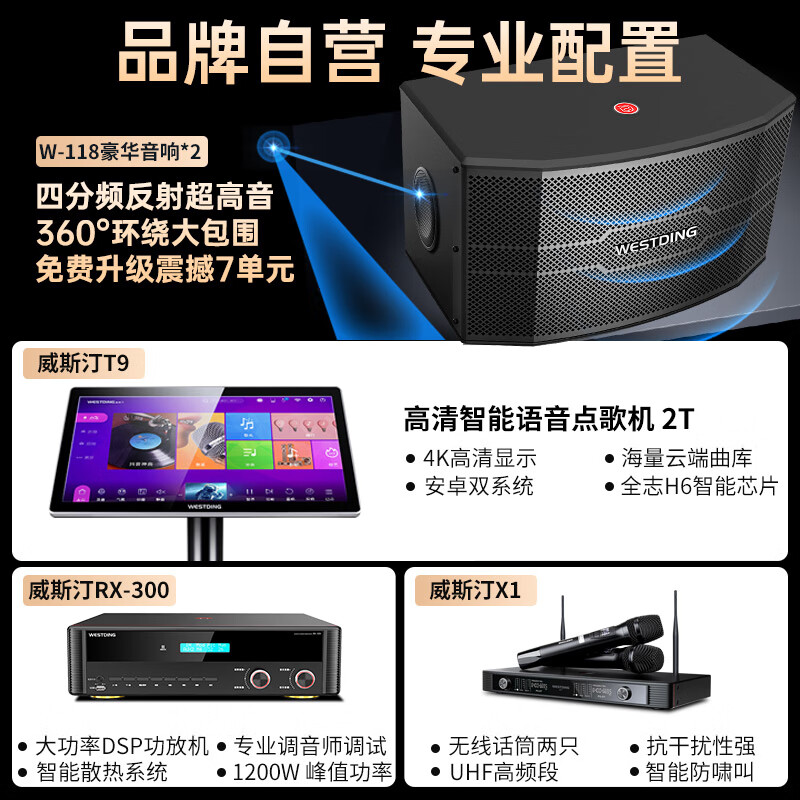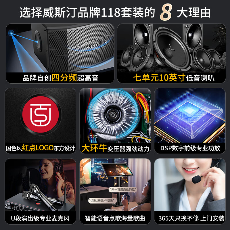 威斯汀家庭ktv音响套装点歌机一体唱歌全套设备客厅卡拉OK影院音箱118四分频反射超高音2T【10吋大包围】价格:5299.00元!